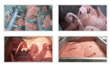 1. The vacuum stuffing mixer rotates the mixing shaft in the double-shaft and multi-blade structure in a vacuum state to make the materials turn over and rotate clockwise and counterclockwise, so that the meat and starch, salt, spices and other auxiliary materials will be fully mixed and stirred evenly, which can effectively extract protein. The meat after mixing is compact, and has no bubble but bright color and good elasticity.